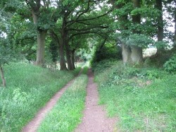 Wir erreichen eine große freie Fläche (Uxmaar), wo geradeaus eine Schranke das Naturschutzgebiet abgrenzt. Von dort gesellt sich der Wanderweg Nr. 52, der uns am „Helje Pötz“ verlassen hat, wieder zu uns. Wir folgen unserer Markierung links in den Wald. Nach 800m zweigt nochmals eine gelbe Markierung links ab. Wir wandern mit grün/gelb/blau weiter geradeaus und folgen ihr auch an der nächsten Wegegabelung. Wir durchstreifen einen herrlichen Laubwald mit Brombeersträuchern und Farnen. Rechts öffnet sich dann der Wald und der Wanderweg „52“ führt uns hinaus zu den anschließenden Ackerflächen.