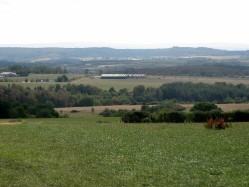 Wieder vom Turm hinunter gehen wir erst 50m zurück und wandern links erst durch ein kleines Waldstück, anschließend am Rand entlang bis an die L113. Hier führt ein Feldweg links parallel zur Straße. An der nächsten Wegeinmündung biegen wir rechts in die „Gartenstraße“ ein und folgen nach 160m links der „Hauptstraße“ bis zur „Wendelsgasse“, wo die anderen zwar schon gemütlich im Einkehrlokal „Müller“ sitzen, aber den schönsten Panoramablick der Tour verpasst haben.(12,7km)